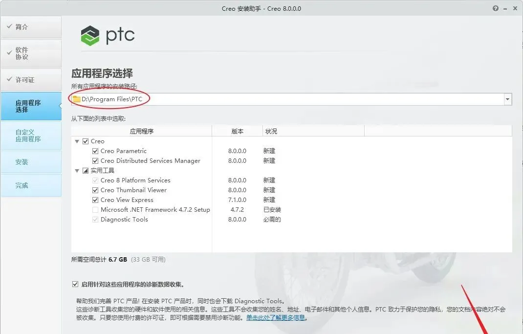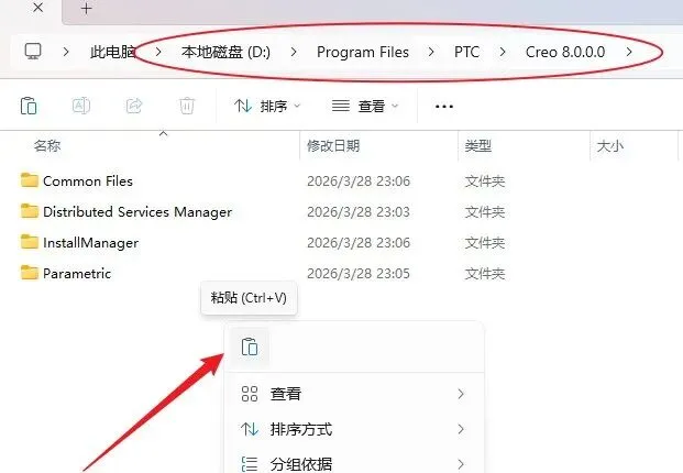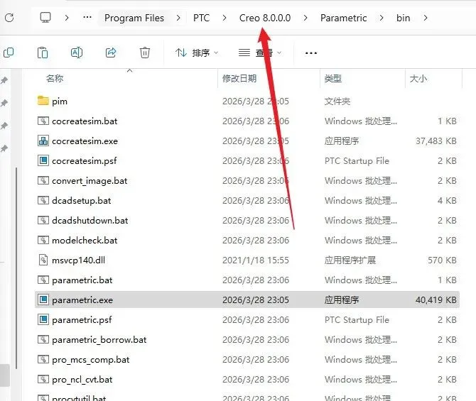 23.点击路径地址中的【Creo 8.0.0.0】。