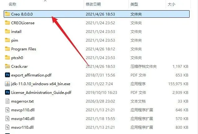 20.打开安装包解压后的【Creo8.0_64bit】文件夹,双击打开【Creo 8.0.0.0】文件夹。