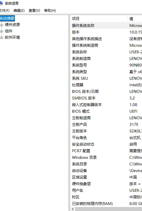 • 回车后打开“系统信息”窗口,可看到: • 处理器(CPU) • 已安装物理内存(RAM) • 系统类型(32位 or 64位) • 主板型号等 适合快速了解基础配置。 (作者的办公电脑,配置一般)