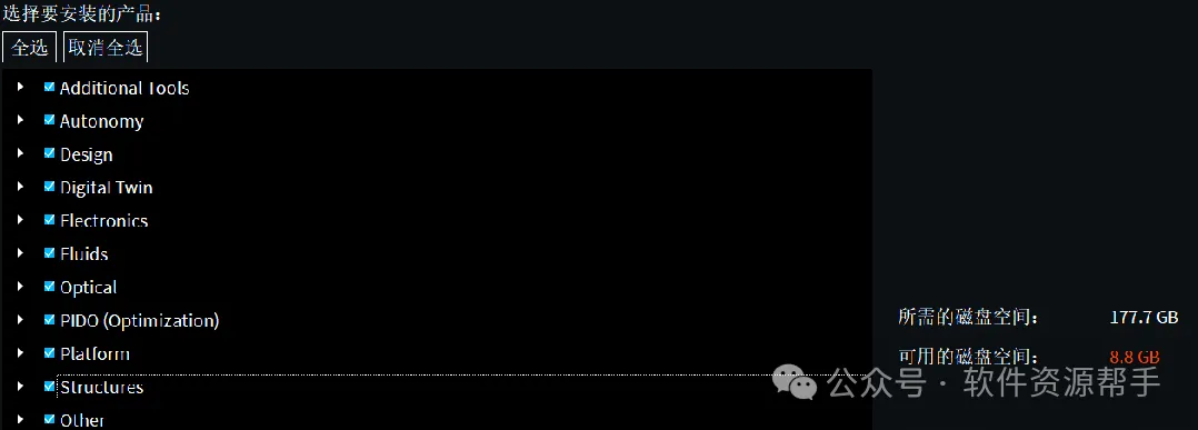 ANSYS2025版本包含旗下众多模块,只勾选自己需要使用的产品模块即可。