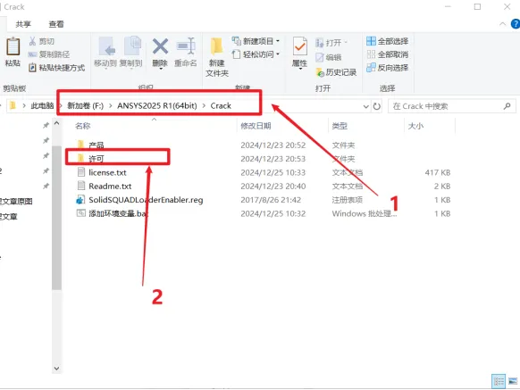 19.打开安装包解压后的【ANSYS2025 R1(64bit)】文件夹中的【Crack】文件夹,双击打开【license】。