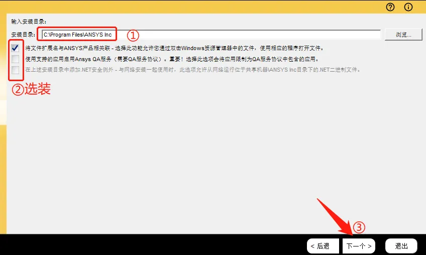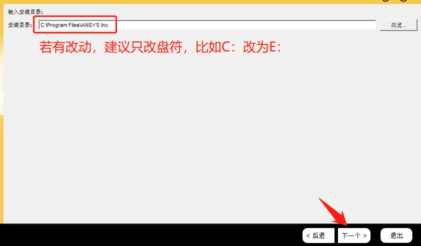 3.3、设置安装目录,此目录要与步骤2.4保持一致(必须),点击下一个