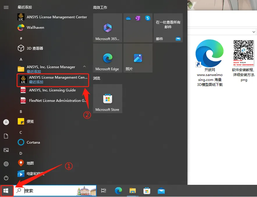 2.8、打开开始菜单,找到并打开ANSYS License Management Center 程序,