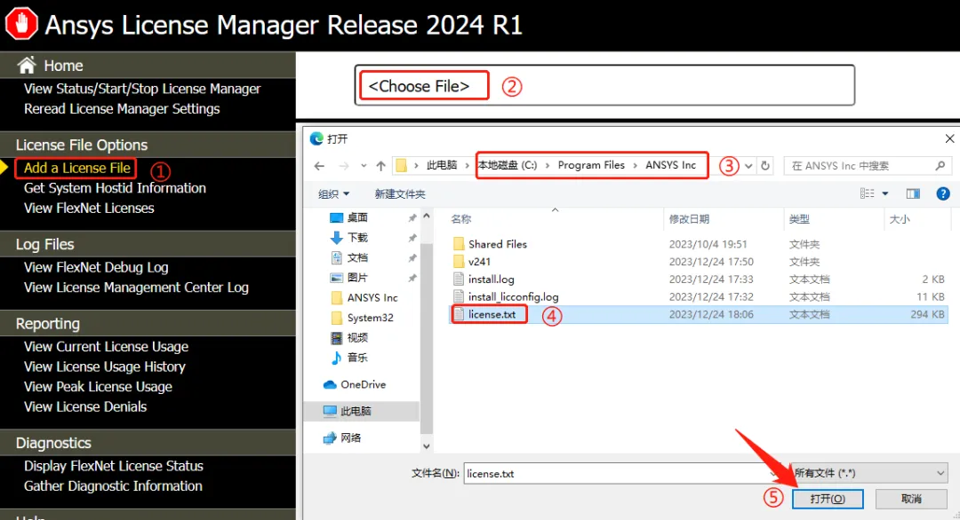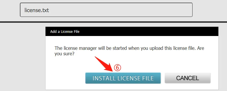 2.11、再次进入许可管理界面,依次点击“Add a License File” > “Choose File”,选择刚刚编辑的license.txt,点击打开,再点击INSTALL LICENSE FILE,直到出现成功的提示“”