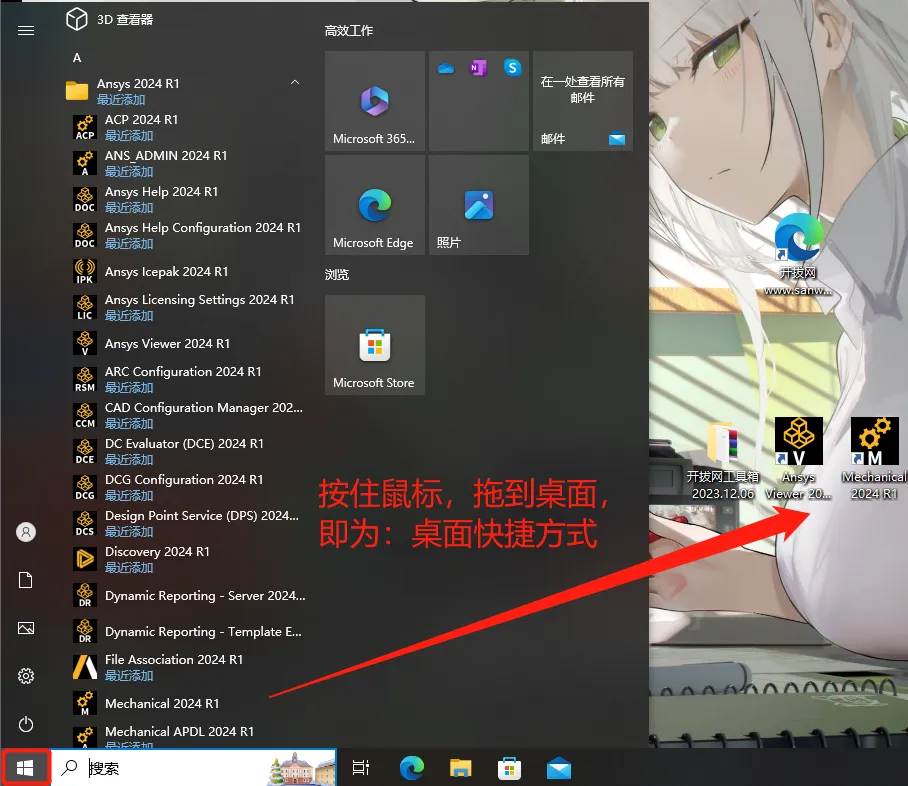 5、我们在菜单(应用)里查看安装的所有ANSYS软件,鼠标按住任意一个程序,拖到桌面,即为:桌面快捷方式