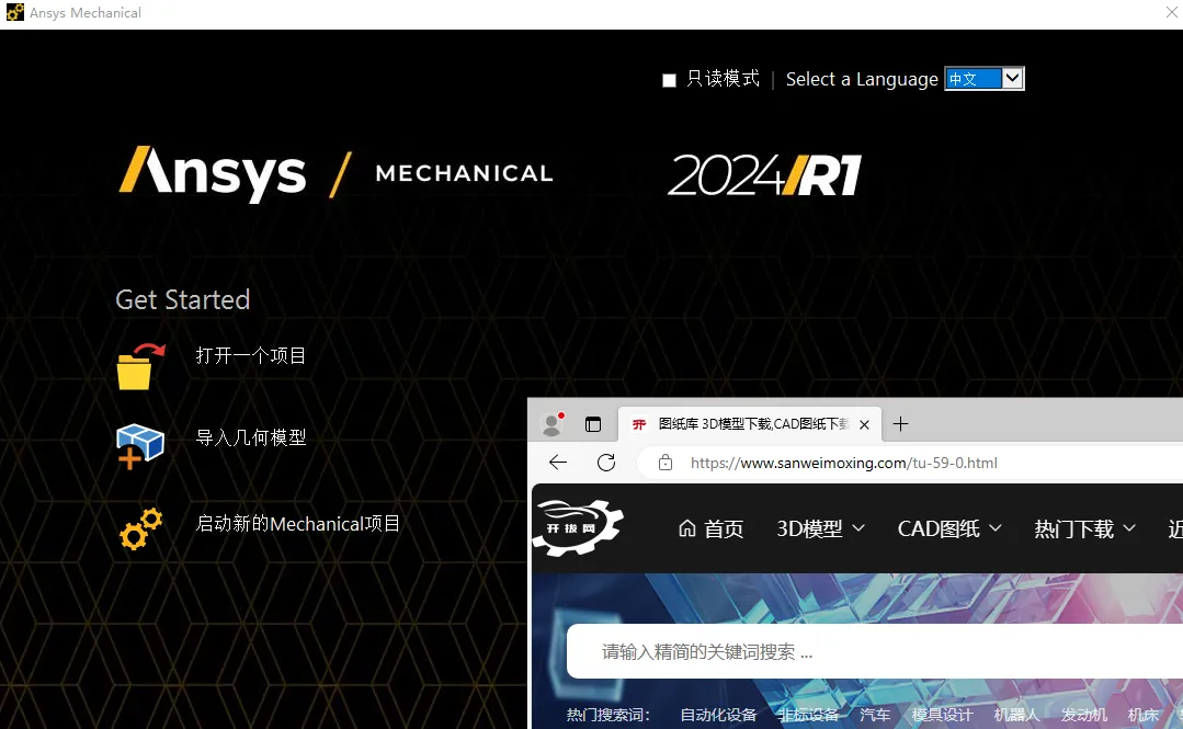 ANSYS Products 2024 R1为目前最新版的版本,默认支持简体中文了,不需要再额外设置中文语言,这一点值得点个赞!