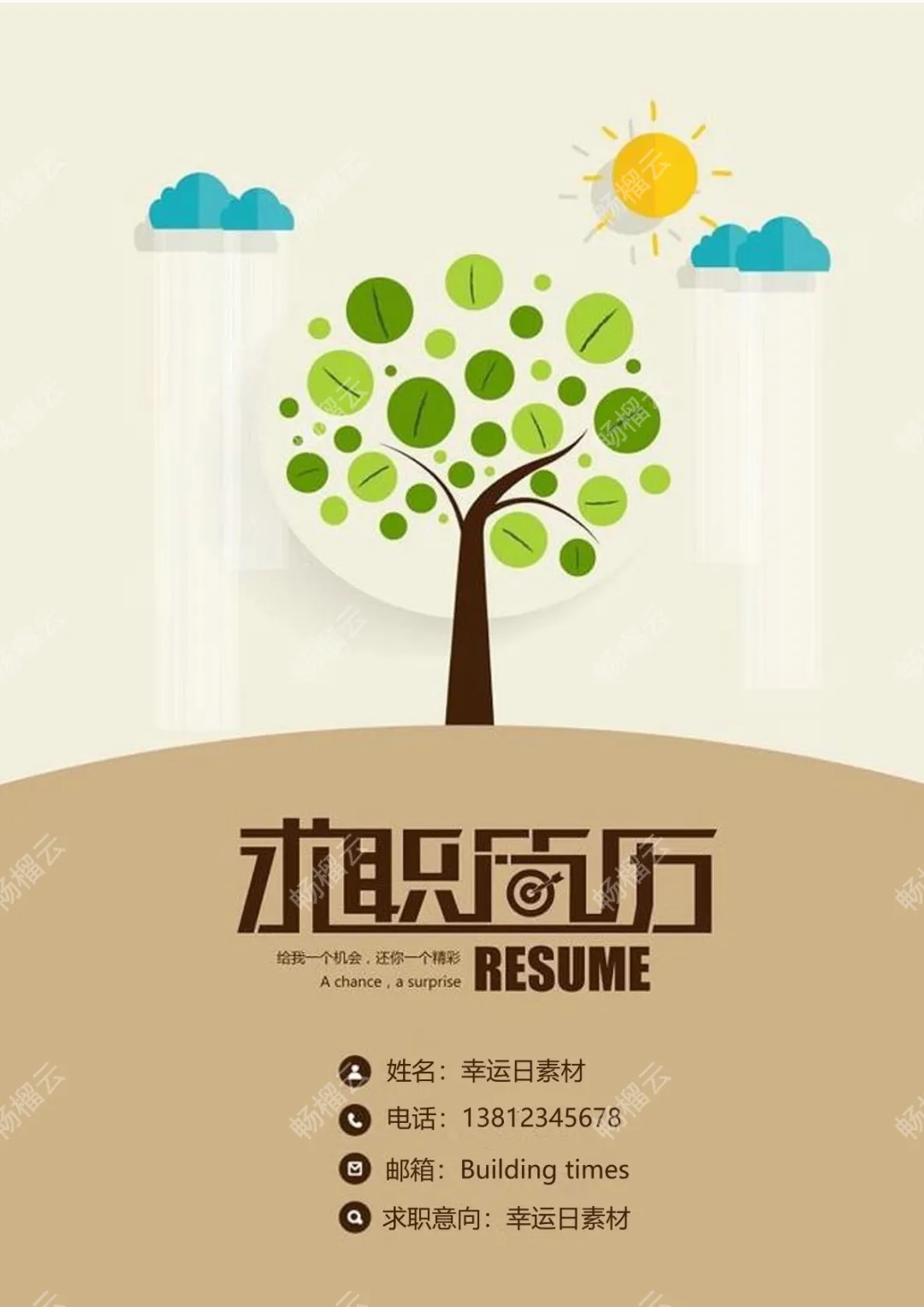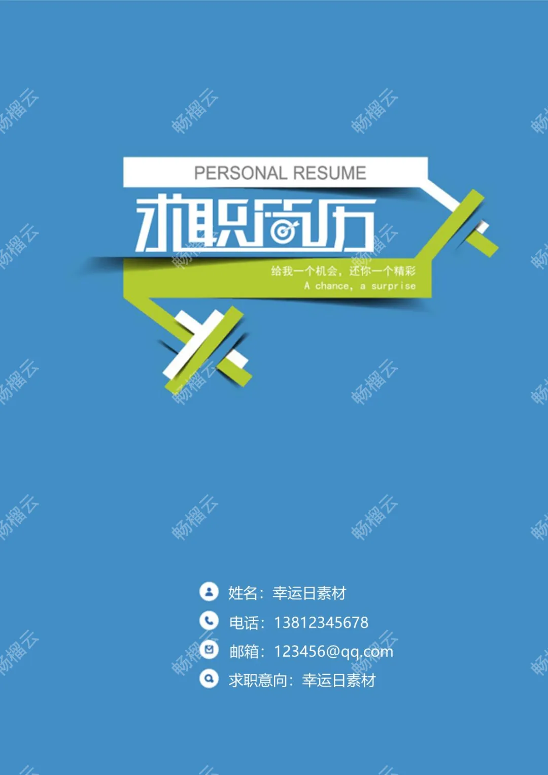 这里是幸运日素材的求职意向信息,包含联系邮箱123456@qq.com与联系电话13812345678,可获取相关求职对接联系方式。