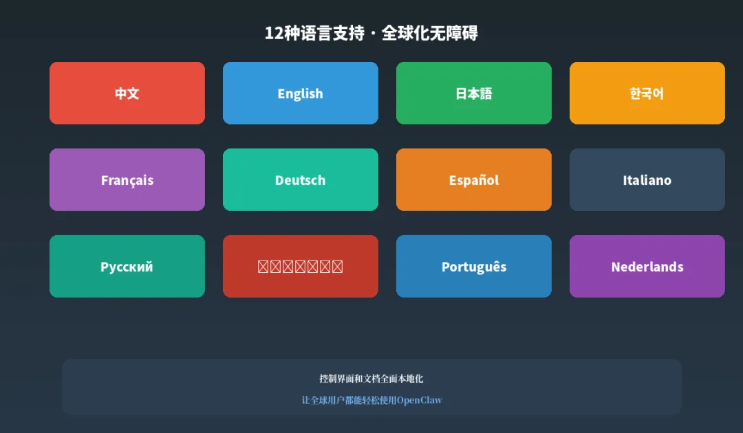 无论你在哪个国家,用什么语言,都能无障碍使用 OpenClaw。这对于跨国团队协作、出海企业、国际用户来说,都是重大利好。
