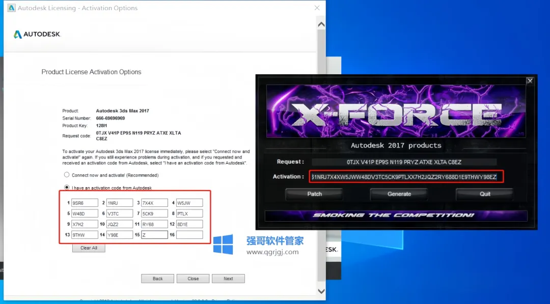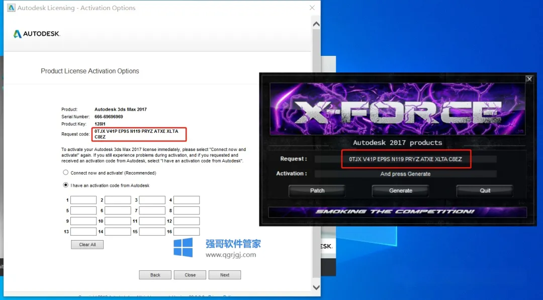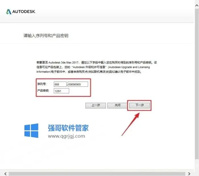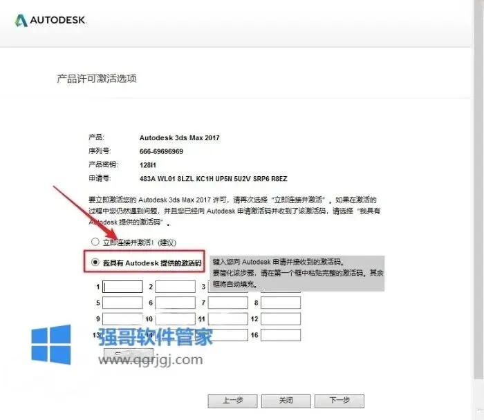 17.生成激活码后,把激活码复制粘贴到3dsmax2020激活栏中,最后点击下一步