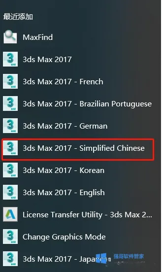 19.点击开始-所有程序-Autodesk-3ds Max 2017 - Simplified Chinese