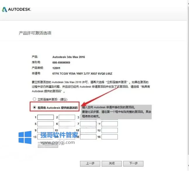 13.选择【我具有Autodesk提供的激活码】(不要关闭此界面)