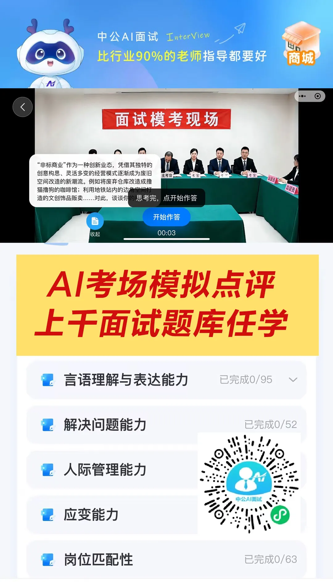 现在备考,限时 0 元体验中公 AI 面试,无需下载 APP,扫码即可开启高效备考: