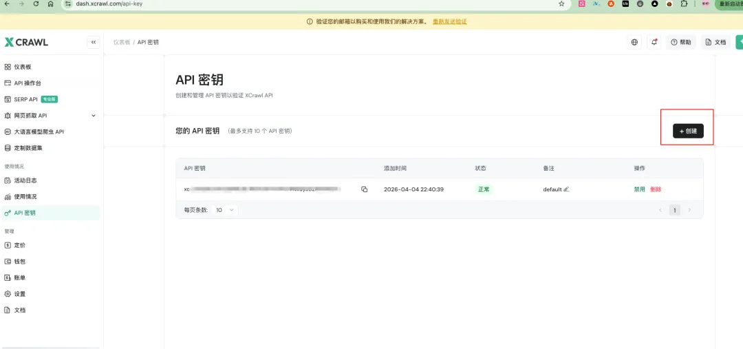 ▲ xcrawl 创建 API Key