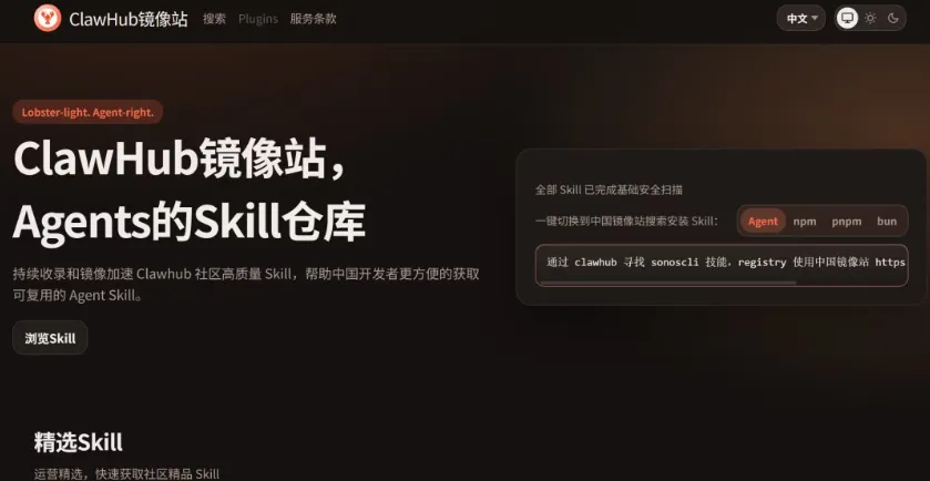 原站全英文的界面,让不少零基础用户望而却步:找技能要靠翻译软件,搜关键词得先转换成英文,稍有不慎就找不到想要的功能。而镜像站完成了全维度中文化改造,中文搜索框、中文技能分类导航、中文详细介绍,从入口到操作全程无语言障碍,就算是刚入坑的纯小白,也能一眼找到目标技能。