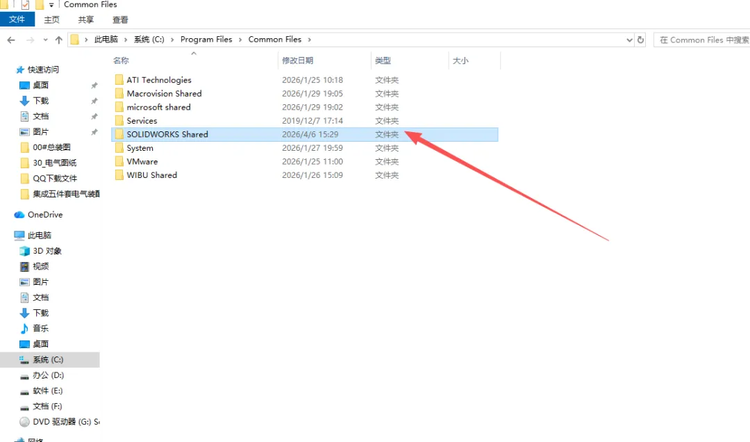 2. 共享库文件:删除「C:\Program Files\Common Files\SolidWorks Shared」和「C:\Program Files (x86)\Common Files\SolidWorks Shared」文件夹;