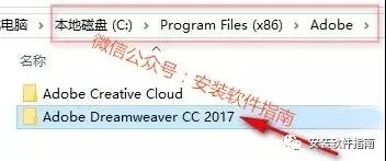 9.打开安装目录默认路径为:C:\Program Files(x86)\Adobe并打开【Adobe Dreamweaver CC 2017】文件夹