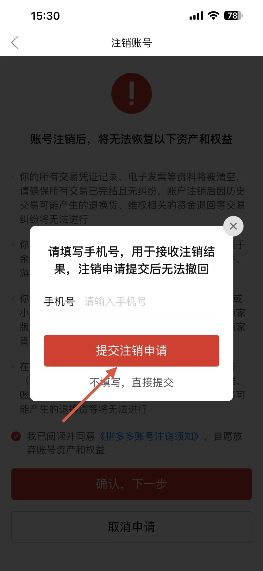 这样操作就彻底跟拼多多再无瓜葛咯,需要与拼多多断绝来往就要彻底注销账号,不然以后还会下载拼多多的哦!