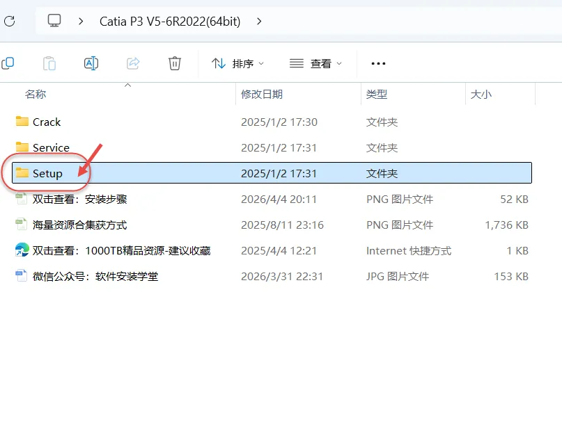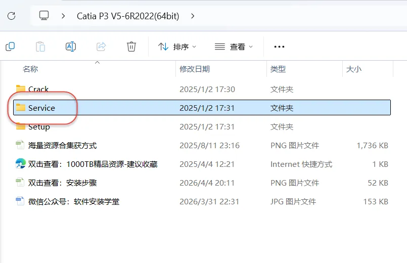 19.打开安装包解压后的【Catia P3 V5-6R2022(64bit)】文件夹,双击打开【Service】文件夹。