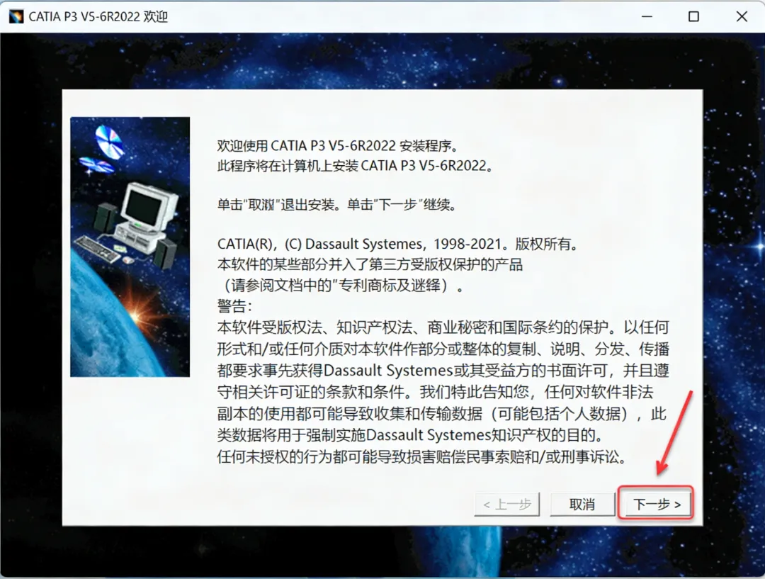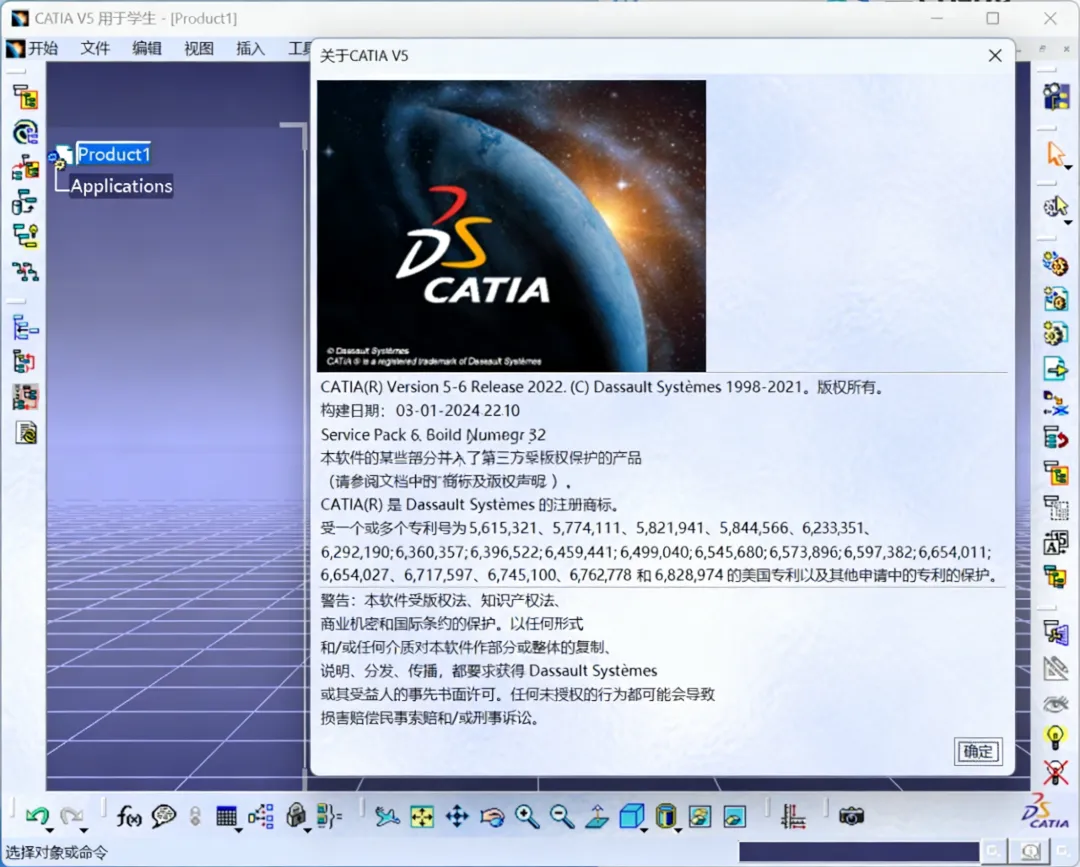 32.双击桌面【Catia P3 V5-6R2022】图标启动软件。