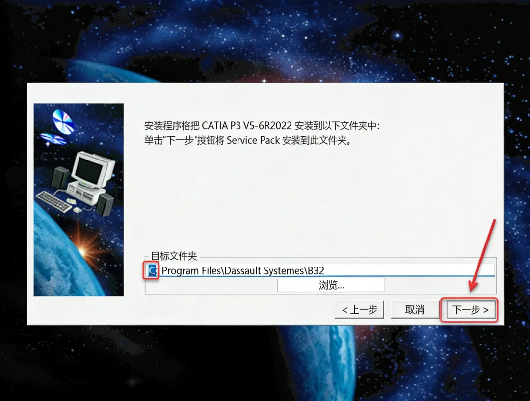 7.修改路径地址中的第一个字符C可更改安装位置(如:把C改为D软件将安装到D盘),点击【下一步】。