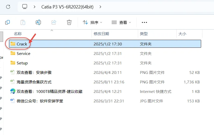 28.打开安装包解压后的【Catia P3 V5-6R2022(64bit)】文件夹,双击打开【Crack】文件夹。
