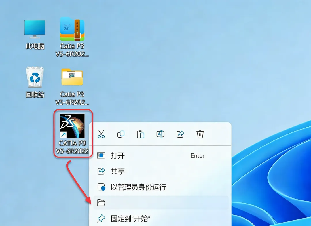 30.鼠标右击桌面【Catia P3 V5-6R2022】图标选择【打开文件所在的位置】。