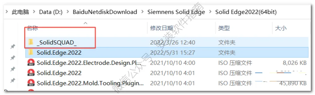 12.打开安装包解压后的【Siemnens Solid Edge 2022】文件夹,双击打开【-SolidSQUAD -】文件夹