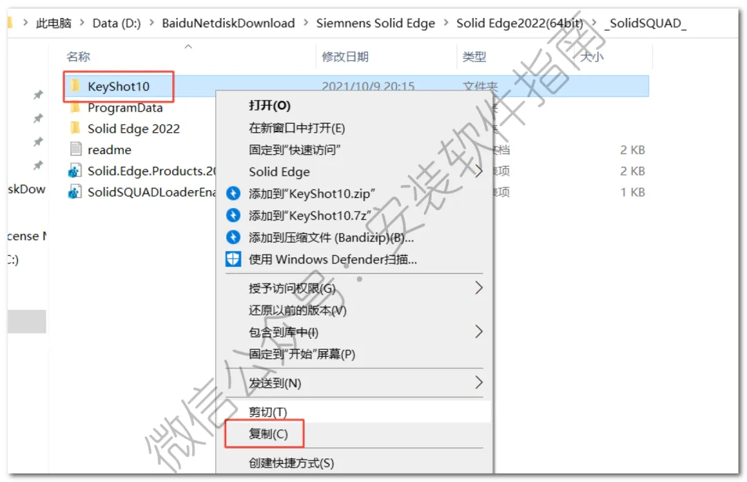 18.回到打开后的【-SolidSQUAD -】文件夹,鼠标右击【KeyShot 10】选择【复制】