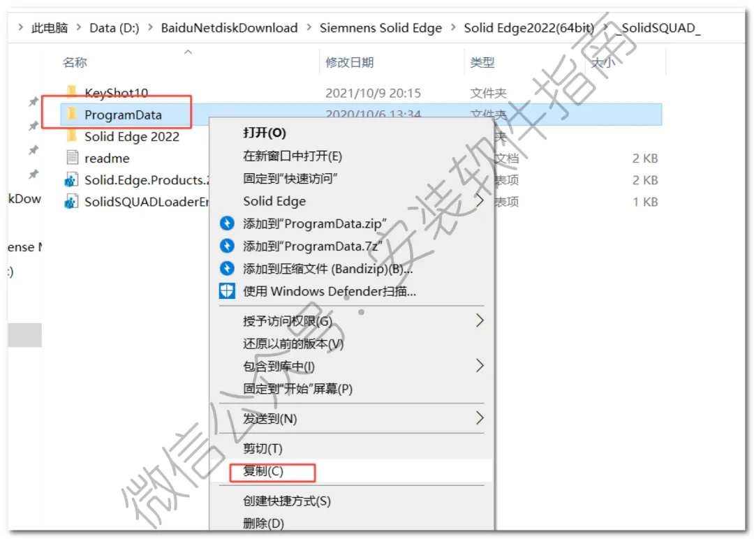 22..回到打开后的【-SolidSQUAD -】文件夹,鼠标右击【ProgramDate】选择【复制