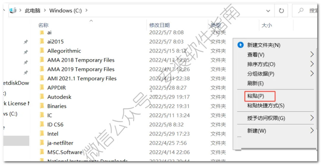 23.打开电脑C盘,在此页面空白处鼠标右击选择【粘贴】