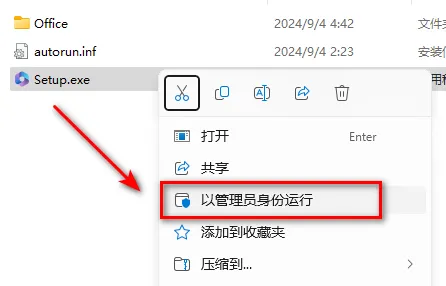 3.选中Setup,鼠标右键选择“以管理员身份运行”