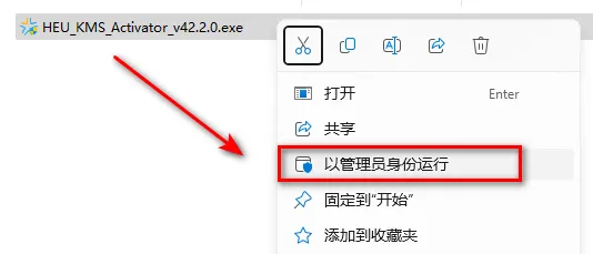 7.选中HEU_KMS_Activator,鼠标右键点击“以管理员身份运行”