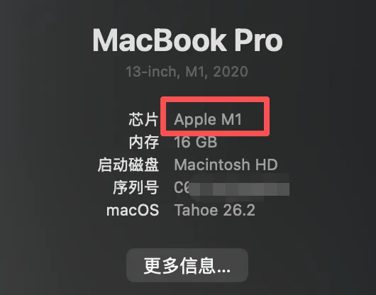 macOS(苹果图标 → 关于本机)