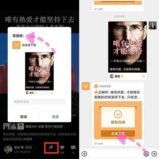 以上平台都是直接把视频转发或分享链接给机器人,实现自动提取,同时支持苹果系统、安卓系统和电脑系统使用。
