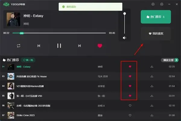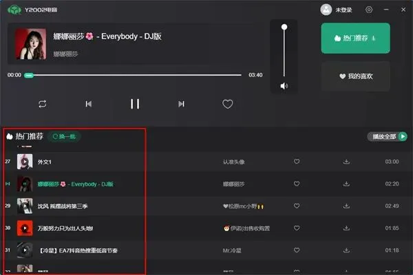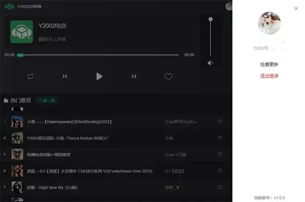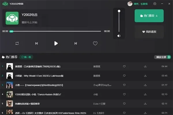 喜欢电音的兄弟看过来——y2002电音电脑版上线了!全网超火、资源超全、超受欢迎的 DJ 电音在线播放器,主打以歌会友。收录了官方上千万优秀作品,包括 DJ 舞曲、嗨歌、新火电音、车载、喊麦、各大短视频 App 的 BGM 配乐等。