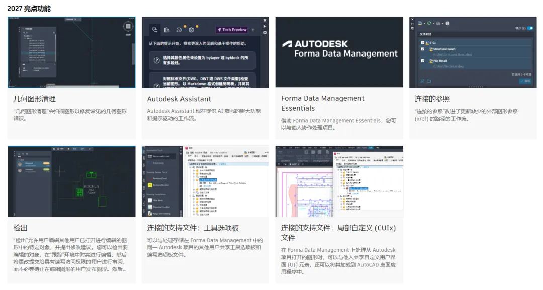 取消对 AutoCAD Web 版和移动版的支持:此版本中删除了“从 Web 和移动设备打开”(OPENFROMWEBMOBILE) 和“保存到 Web 和移动设备”(SAVETOWEBMOBILE) 功能。如果您以前将图形文件保存到 AutoCAD Web 版和移动版,建议您利用 Forma Data Management 在任意位置存储和访问图形文件。