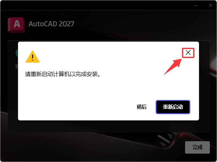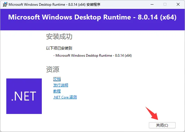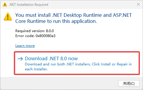第10步,注:【首次安装】这个CAD2026+版本会提示需要一个NET运行库8.0版本如下图,【有这个运行库的不会提示无需安装】。