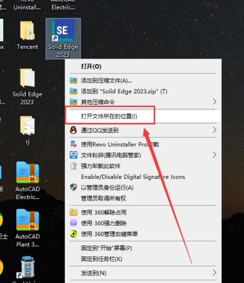 6. 在电脑桌面找到【Solid Edge 2023】软件,鼠标右键打开文件所在的位置进入安装目录位置。