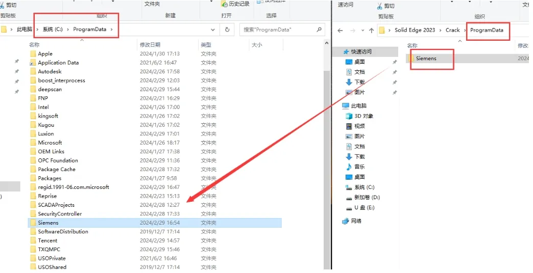9. 复制【ProgramData\Siemens】文件夹到【C:\ProgramData】。