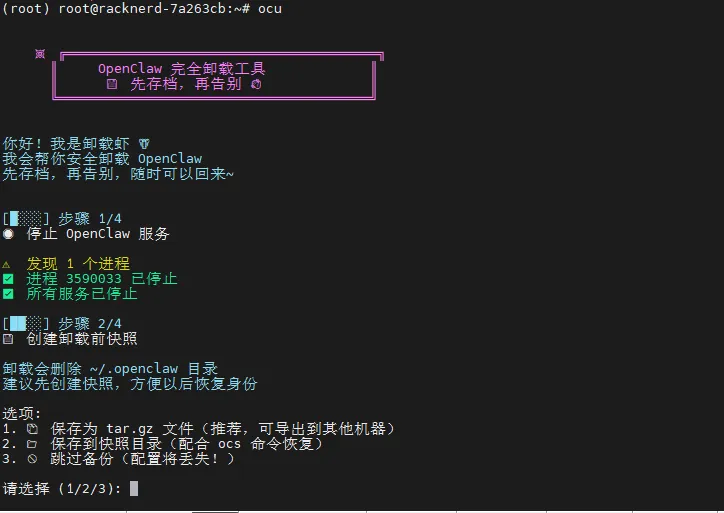 openclaw-uninstall# 或简写ocu📋 卸载流程全解析