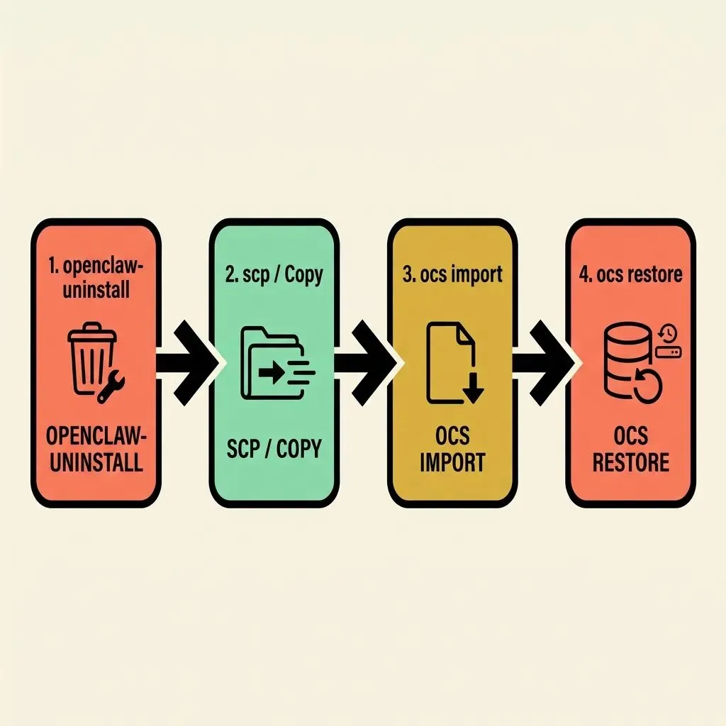 # 旧机器:导出快照openclaw-uninstall# → 选择选项 1,保存到 ~/Desktop/backup.tar.gz# 传输到新机器scp ~/Desktop/backup.tar.gz new-machine:~/# 新机器:导入快照pip install openclaw-snapshotocs import ~/backup.tar.gzocs restore backup🎯 命令选项