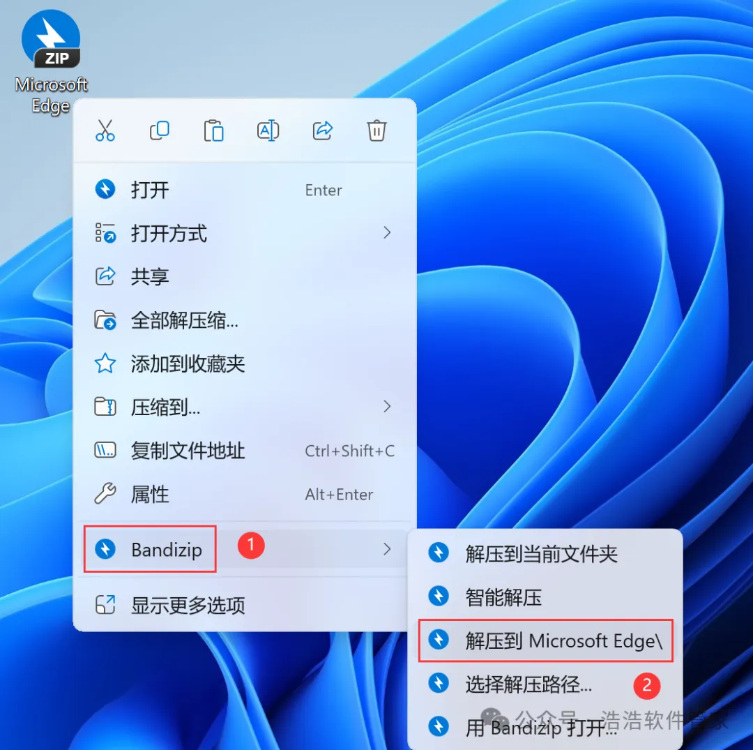 1、下载Microsoft Edge软件安装包到电脑上,右键选择【解压到Microsoft Edge\】