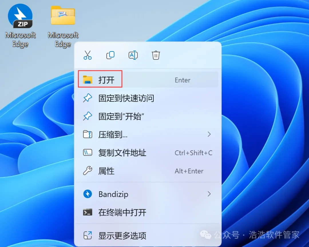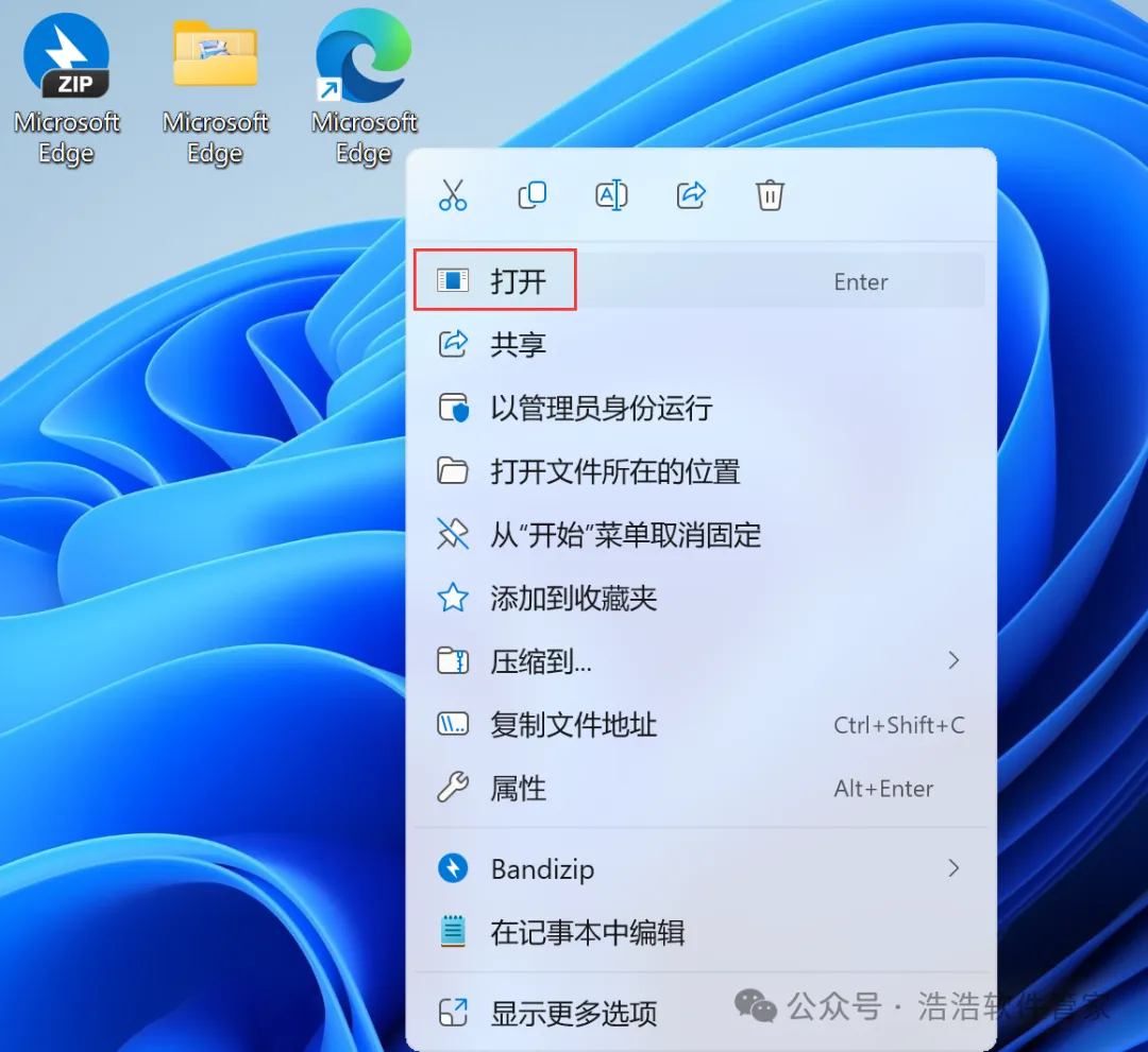 5、回到桌面,右键桌面上的【Microsoft Edge软件图标】,点击【打开】