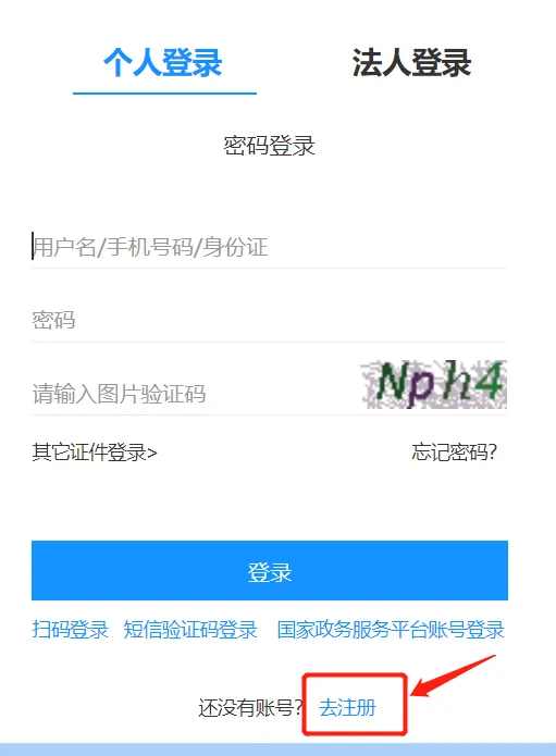 2、如果首次登录,选择下方【去注册】