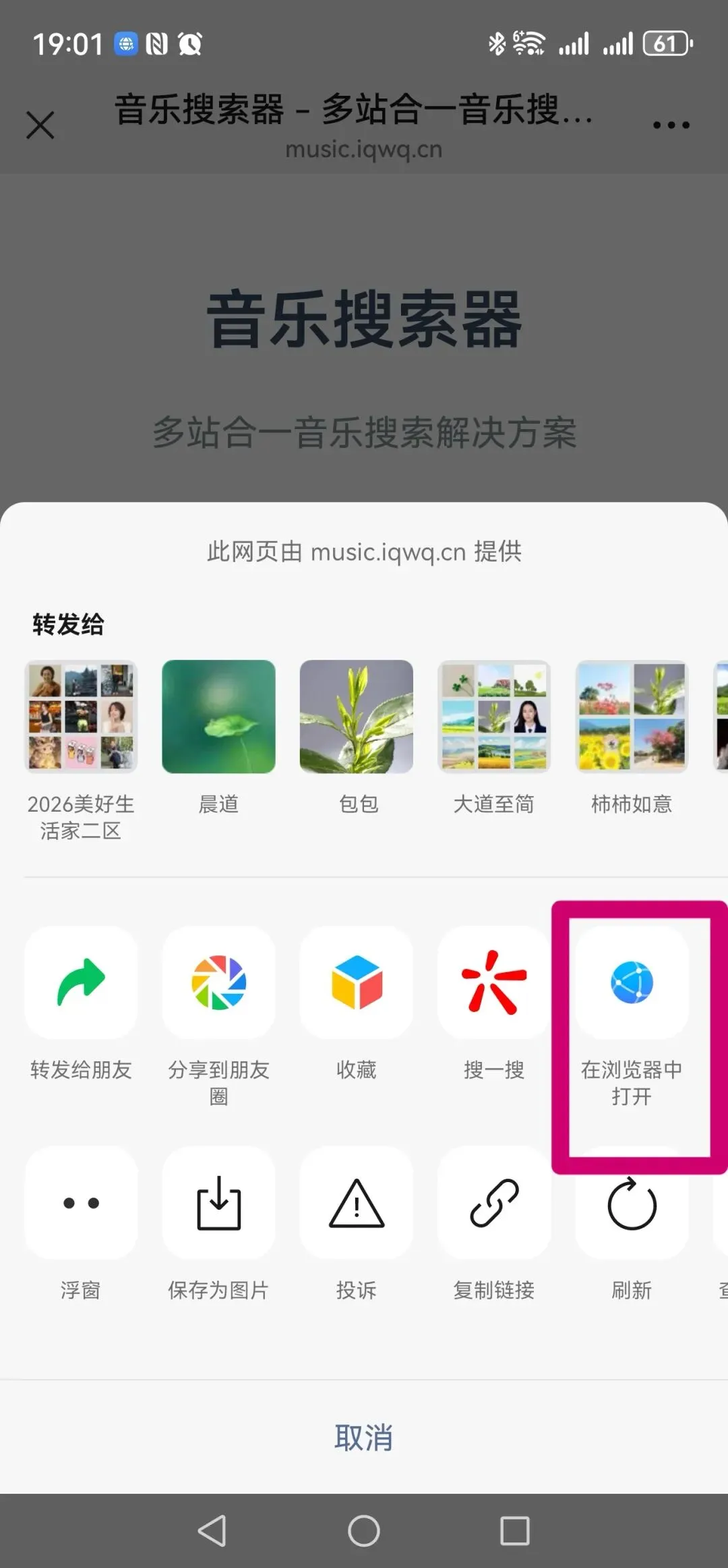 1. 在微信群里点击链接 “music.iqwq.cn”