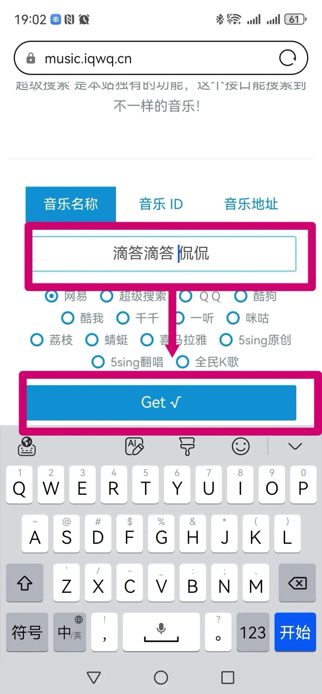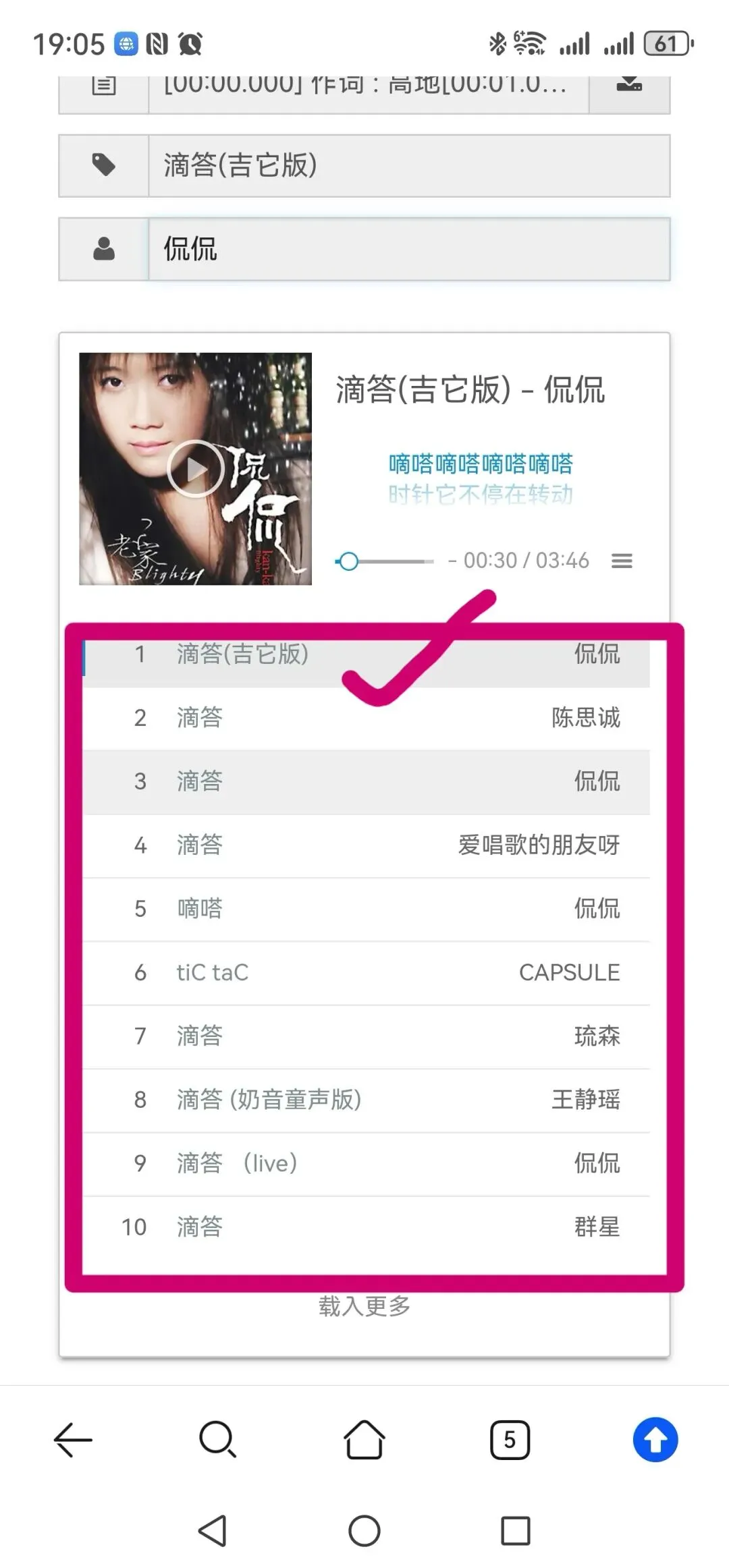 例如我喜欢侃侃的歌,我就输入“滴答”