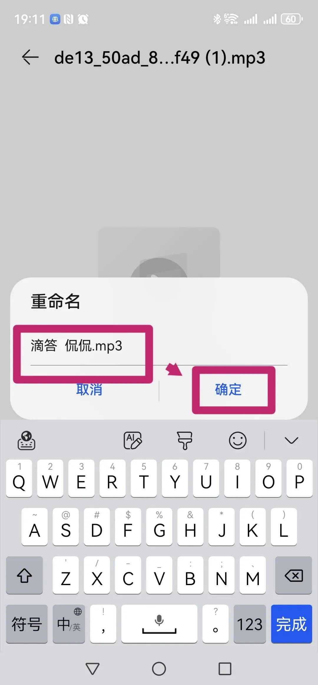 5、把那串乱码删掉,直接写上歌曲名字(比如“滴答滴答-我最爱版”),点确定!