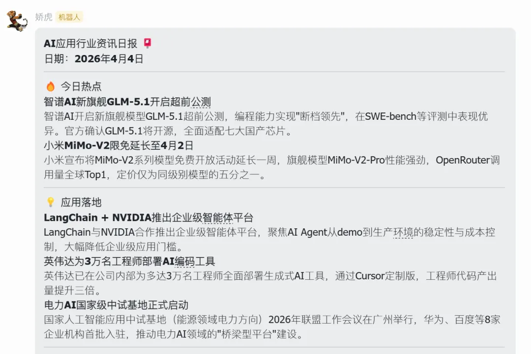 自动生成周报、项目进度总结、会议纪要; - 固定推送