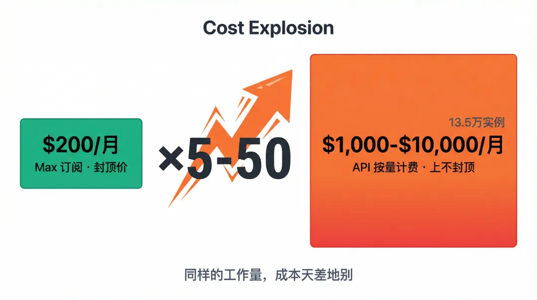 之前用Max订阅跑OpenClaw是每月200刀封顶,现在走API的话,行业估算同等工作量大概1000刀/月起步。多家科技媒体估算成本涨了5-10倍起步,社区重度用户的实际账单显示最高可达50倍。