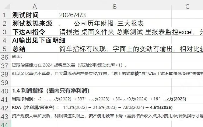 1、将某个公司23-25年财报给到小龙虾,让它做报表分析,分析财务各指标及存在的问题,并给出改善建议,分析完制作PPT。